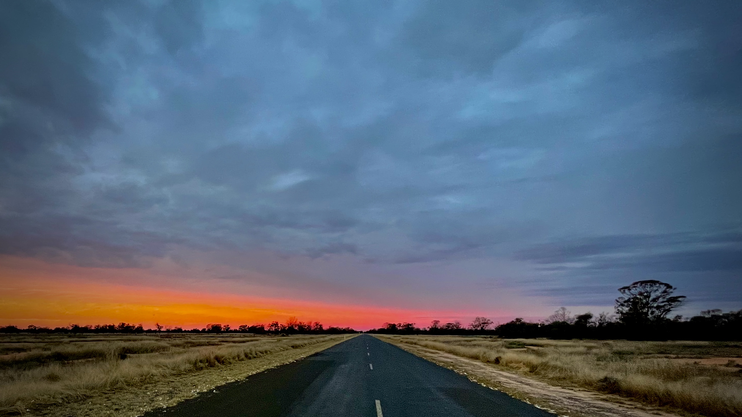 An empty road stretches toward a glowing horizon beneath dramatic evening clouds, capturing the feeling of distance, solitude and open space.